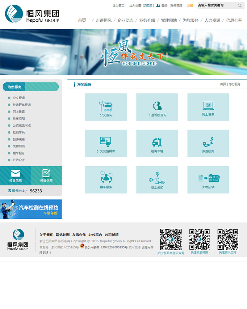 浙江恒风集团有限公司的前身系浙江恒风集团有限公司,成立于1994年6月18日。2009年3月,义乌市实行国有资产管理体制改革,浙江恒风集团有限公司划归义乌市交通发展责任有限公司。2013年12月底,义乌市进行了新一轮国有企业管理体制改革,组建设立“一个中心,八大集团”。浙江恒风集团有限公司为义乌市八大集团之一,主要负责我市城乡公交与城际公共交通的运营,公共交通基础设施的投资、建设和管理。经营业务有长途客运、公交客运、出租车客运、客运站经营、旅游、汽车综合性能检测、广告、物业、房地产、进出口贸易、汽车销售市场、停车场等。