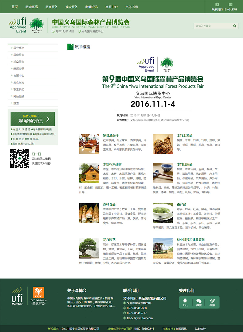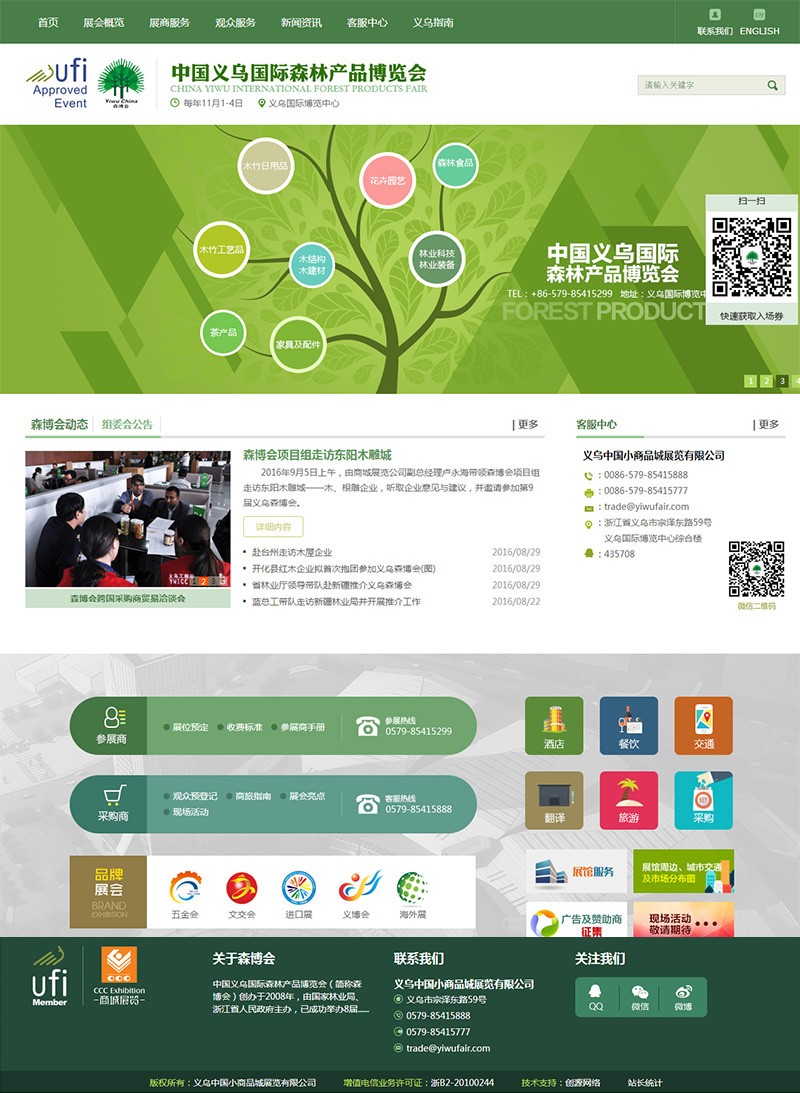 中国义乌国际森林产品博览会(简称森博会)创办于2008年,由国家林业局、浙江省人民政府主办,已成功举办六届。森博会是一个绿色、低碳、环保的展会,贸易功能强劲,商业机会众多,国际化水平突出,服务体系完善,展会规模、展会成交额、展会影响力均居亚太同类展会之首,享有“林业奥运会”美誉。